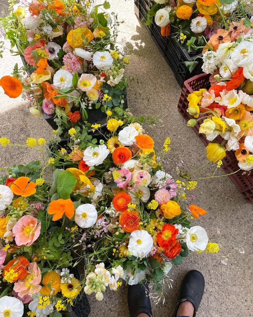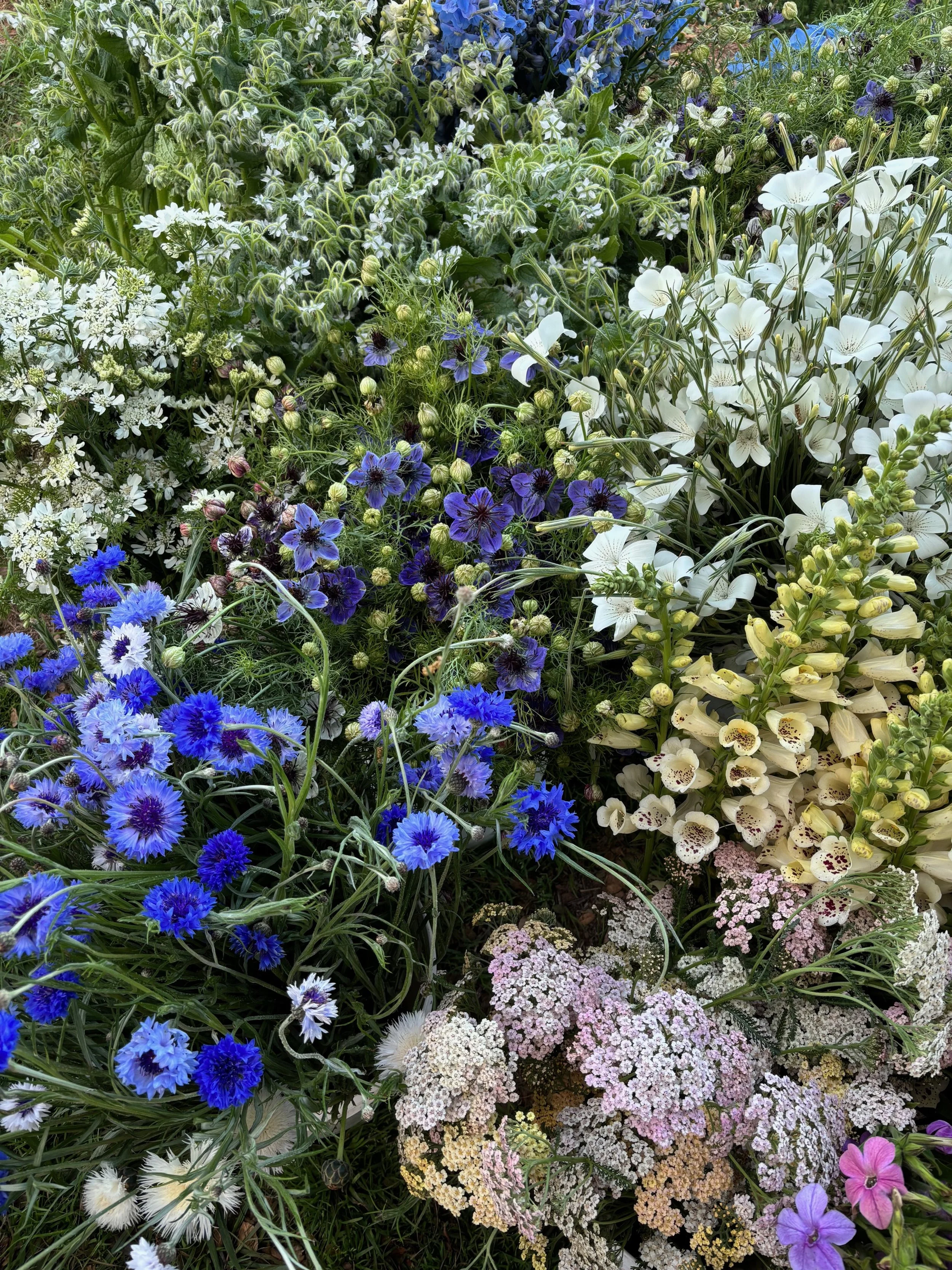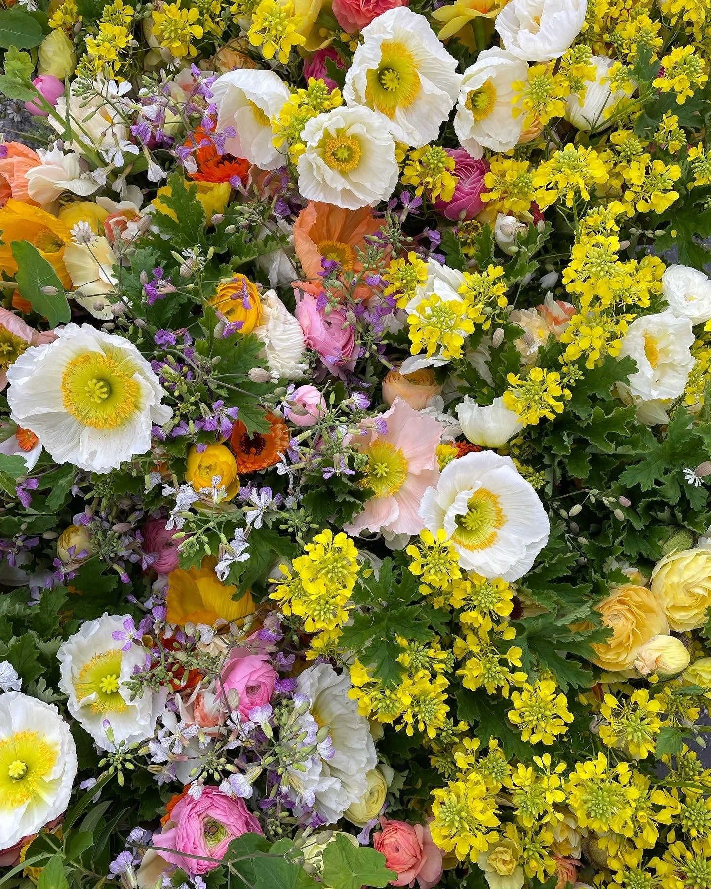 the first unfurling: poppies, daffodils, ranunculus, sweet peas, yarrow, tulips, larkspur, roses, nigella, agrostemma....